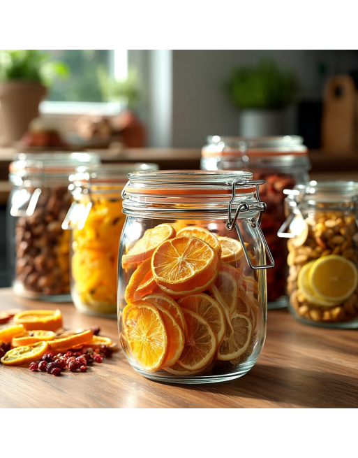 Doté d’une fermeture hermétique à clip en métal et d’un joint en caoutchouc, il assure une étanchéité parfaite pour une conservation optimale des aliments. Son design transparent et soigné valorise le contenu tout en garantissant la sécurité alimentaire. Parfait pour une utilisation en boutique, en vitrine, ou pour le stockage de produits faits maison.