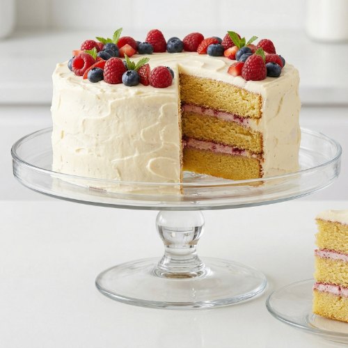 Le Plateau Mavis Ø30 cm x H.12 cm en verre, robuste et élégant, est idéal pour les professionnels de la pâtisserie pour présenter gâteaux, tartes et entremets avec style et hygiène.