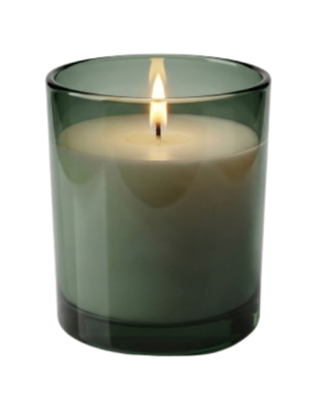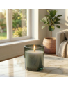 Le pot à bougie SM13 en verre vert fumé, de Ø8 cm sur 9 cm de hauteur, qui diffuse une lumière douce et crée une ambiance chaleureuse et raffinée dans votre intérieur.