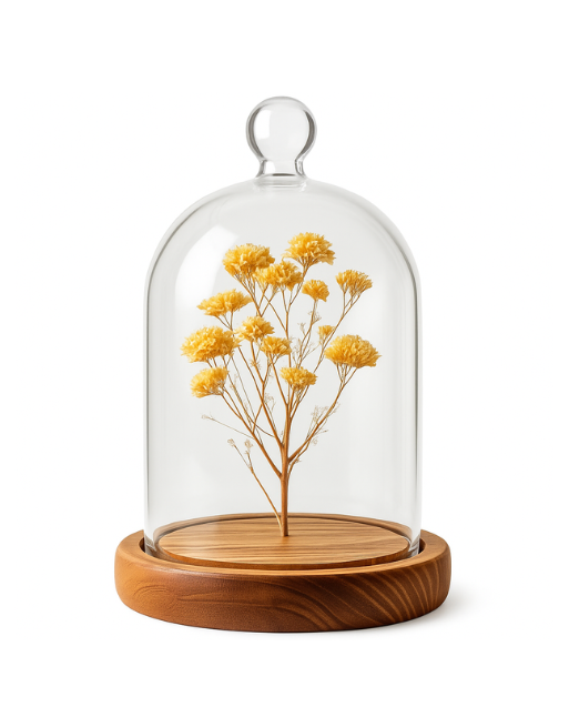 Elégante cloche en verre 11*14,3 cm avec une poignée diamant, posée sur un socle en bois. Idéale pour ajouter une touche de décoration raffinée. Parfaite pour des présentations, des collections, ou comme élément de décoration intérieur.