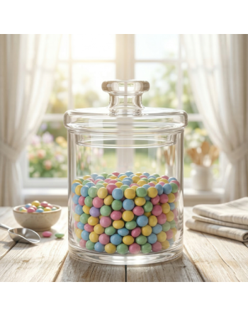 Fabriquée en verre de qualité, la bonbonnière Betty séduit par sa transparence cristalline qui attire le regard et sublime son contenu. Son couvercle assorti assure une protection optimale tout en conservant une esthétique élégante et soignée. Polyvalente, elle s’intègre parfaitement dans une vitrine, sur un comptoir, ou lors de réceptions telles que mariages, baptêmes ou événements professionnels.