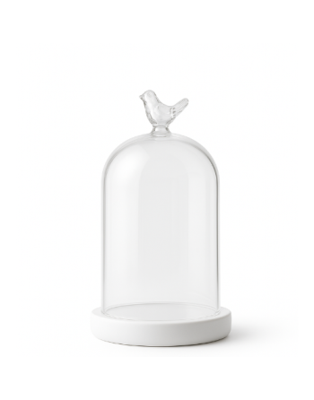 Elégante cloche en verre 10*13 cm avec une poignée oiseau, posée sur un socle blanc. Idéale pour ajouter une touche de décoration raffinée. Parfaite pour des présentations, des collections, ou comme élément de décoration intérieur.
