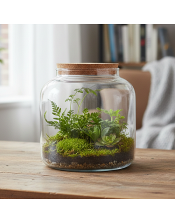 Grâce à sa taille compacte (Ø18 cm x H.17 cm), il s’adapte facilement à tous types d’espaces : bureau, table basse, étagère ou rebord de fenêtre. Que ce soit pour créer un mini-jardin intérieur, un décor original ou une idée cadeau unique, le Terrarium Lena combine design minimaliste et fonctionnalité pratique.
