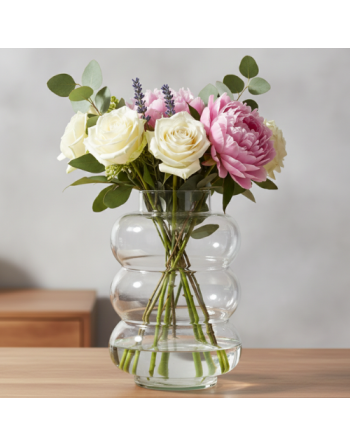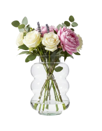 The Ping Vase Ø15 H.25 cm, made of transparent glass, adds a modern and elegant touch to your interior décor while showcasing your favorite flowers.