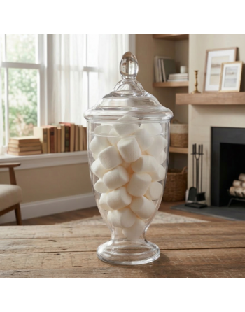 The Marco candy jar Ø19.5 H.46 cm in clear glass combines elegance and practicality, making it perfect for displaying sweets or adding a refined decorative touch to your home.