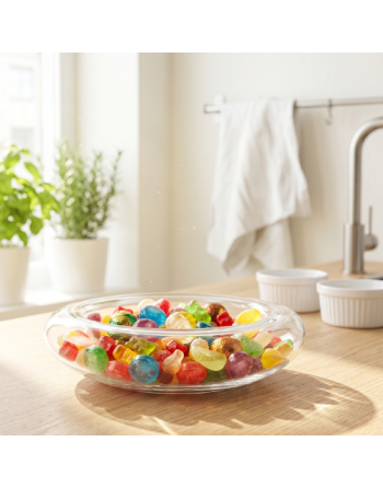 Made from high-quality glass, this candy dish combines transparency, durability, and refinement. It highlights its contents while adding a subtle yet elegant decorative touch to your displays.