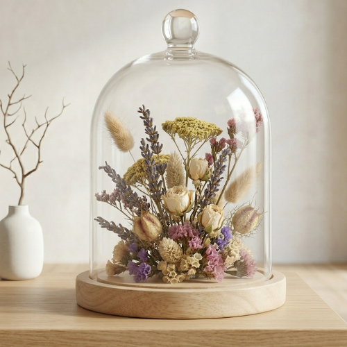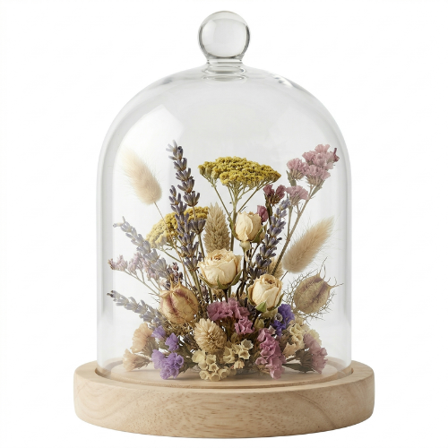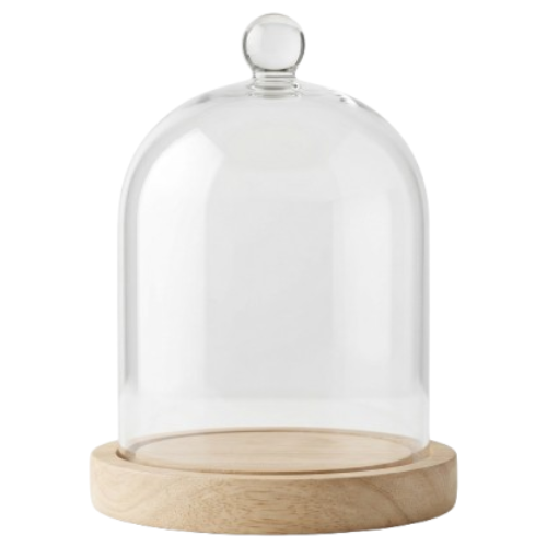 Glass dome on wooden base with diamond Ø10 H.11,2 cm