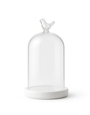 Glass dome on white base with bird Ø11 H.16 cm