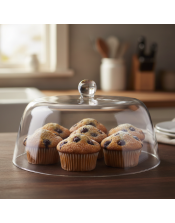 Bring a touch of refinement to your presentations with this Elegance glass dome in clear glass. Designed to enhance your culinary creations, this dome with a diameter of 32 cm and a height of 18 cm is ideal for protecting and showcasing pastries, cheeses, viennoiseries, or decorative items.