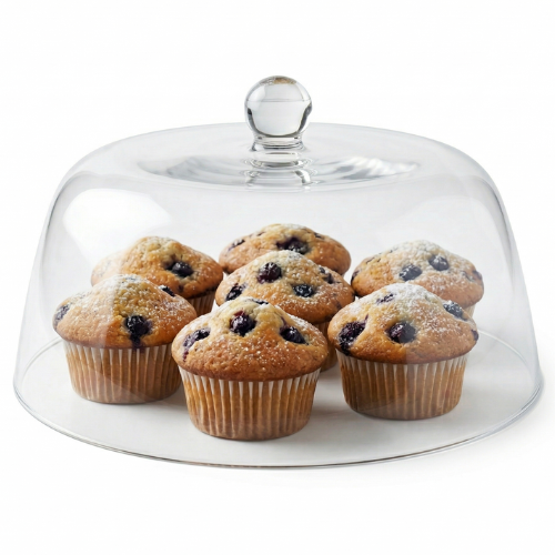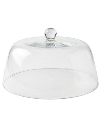 Elegance glass dome Ø32 cm H.18 cm, ideal for protecting and enhancing your presentations of pastries, cheeses, or catering items thanks to its sleek design and perfect transparency.